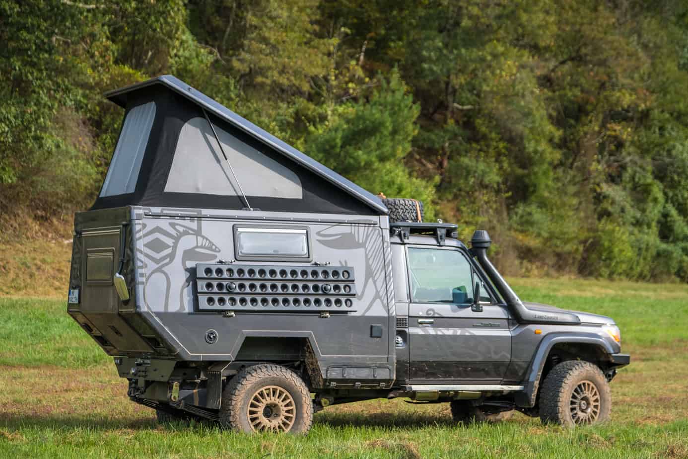 If you’re looking for the biggest and most luxurious off-road trailer out there, you need to check out the Bruder EXP-6. This overland home on wheels has everything you’d need to travel the world in complete comfort. Relax and watch a movie in the air-conditioned and heated cabin, take a nap on the queen-size bed, or prepare a gourmet meal in the massive kitchen. There’s sleeping for six, plenty of storage for clothes and gear, and options for just about everything you can think of including a wine fridge and laundry machine. If you want the full scoop, you can check out the article we wrote on it here, or take a look at their website here.