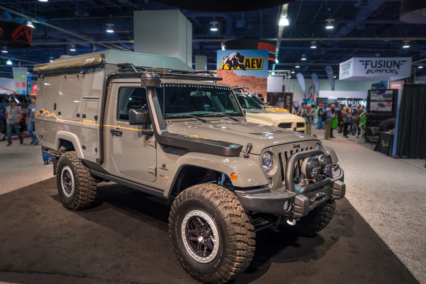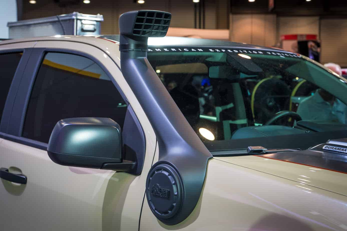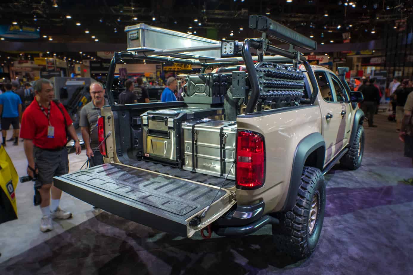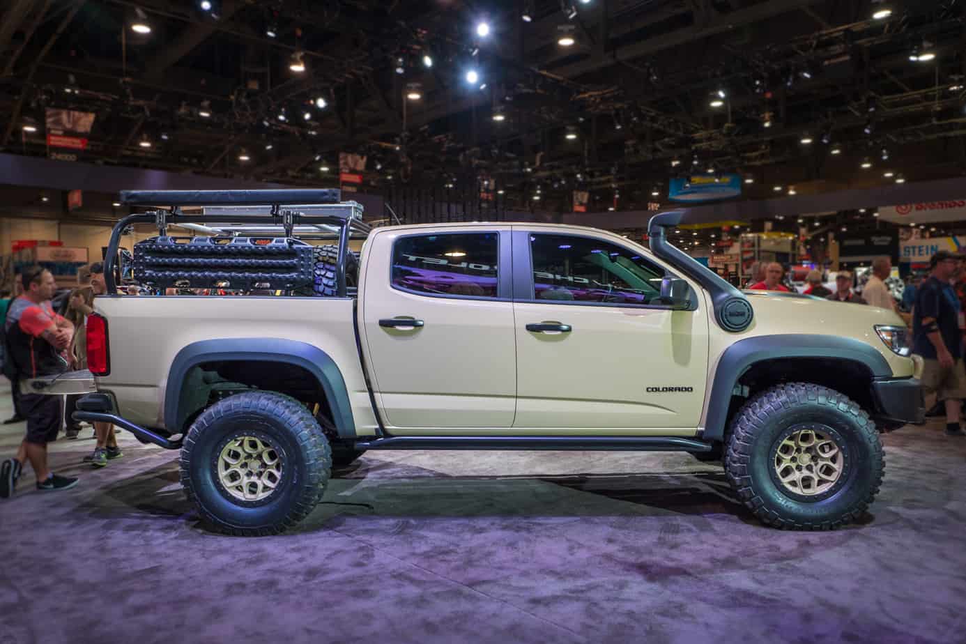 In addition to the awesome Outpost II camper we mentioned above, AEV also unveiled this tan ZR2 at SEMA 2017. As the first diversion from the Jeep and Dodge brands, it was an important project for the company, and they absolutely nailed it. A special lift kit, 35-inch BFG Mud Terrain tires, custom front and rear bumpers, a bed rack with loads of accessories, a custom panel with air, water, and electricity ports, sliders, a snorkel, and more were all added to make this the most impressive Colorado on and off the road. Like AEV’s other concept, no official plan to release this vehicle has been unveiled though, so get your blank checks ready if you want to add this to your wish list.