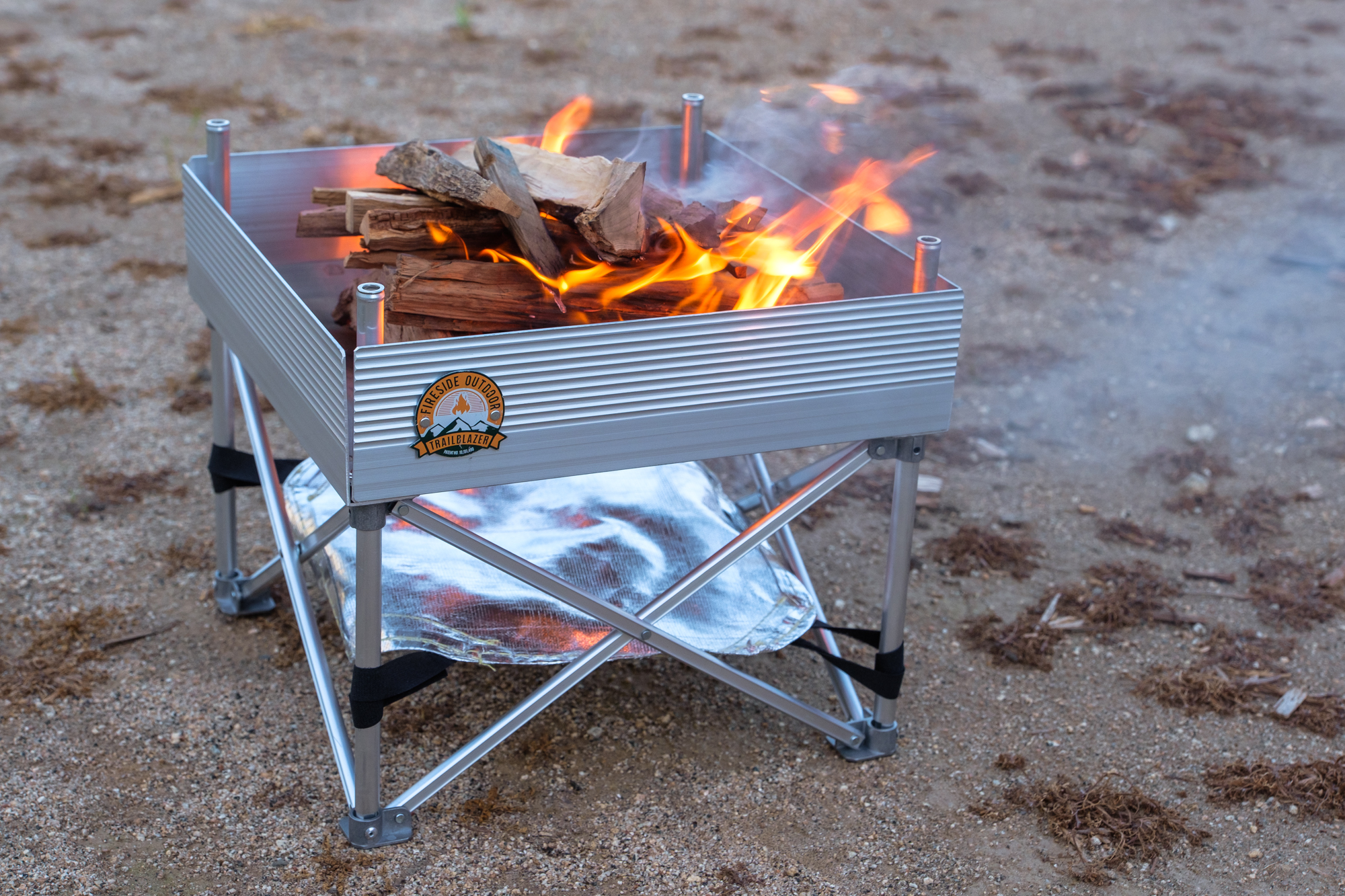 We had the chance to put one of these new Trailblazers to the test last week, and overall, we really liked it. The fit and finish was solid, the stability in the dirt was good, and the weight and size were phenomenal for the limited space we have in our van. Setting up the Trailblazer took less than a minute once unwrapped and only required us to open the aluminum base like a camp chair, drop on the four sidewalls, slide on the fire mesh, and Velcro the shield. Voila, the fire pit was ready to go. Lighting the wood with the additional airflow under the fire was almost like cheating it was so easy, and being able to clean and collapse the fire pit so soon after the fire burned out was fantastic. Almost as fantastic as not having to worry about a large dirty fire pit rattling around in our vehicle and damaging other gear. There was only one major drawback after our test, and that was the size of the wood you need to use.
