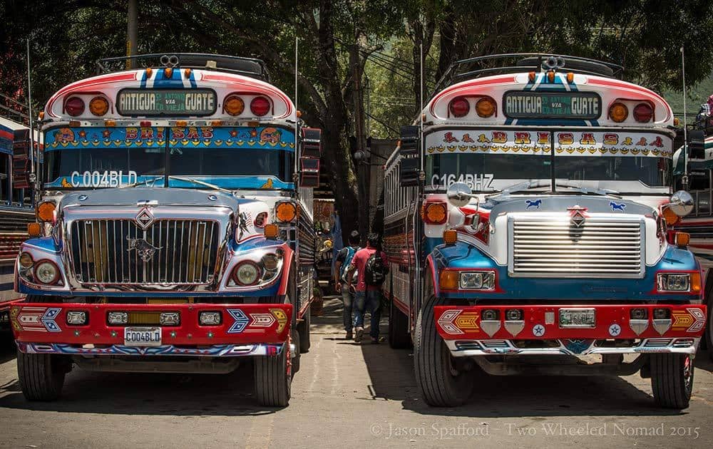 For all the hustle and bustle of the central park, we found the city’s spirited bus station on the outskirts. All headed up ‘Guate,’ ‘Guate,’ ‘Guate,’ including one called the ‘Rabit Express’; the gigantic Guatemalan buses of bedazzling splendour hit me in the face—‘Out of the way gringo!’—the drivers had little incentive to delay their tight schedules. It took us an hour to get our fix and fussy out of the place. A photographer’s focal point alright. Highly polished chrome was the order of the day embedded into a brilliant spectrum of colours on the beefy bumpers and elevated bonnets. Apart from the US style yellow school buses parked up, most looked like massive travelling carnival trucks.