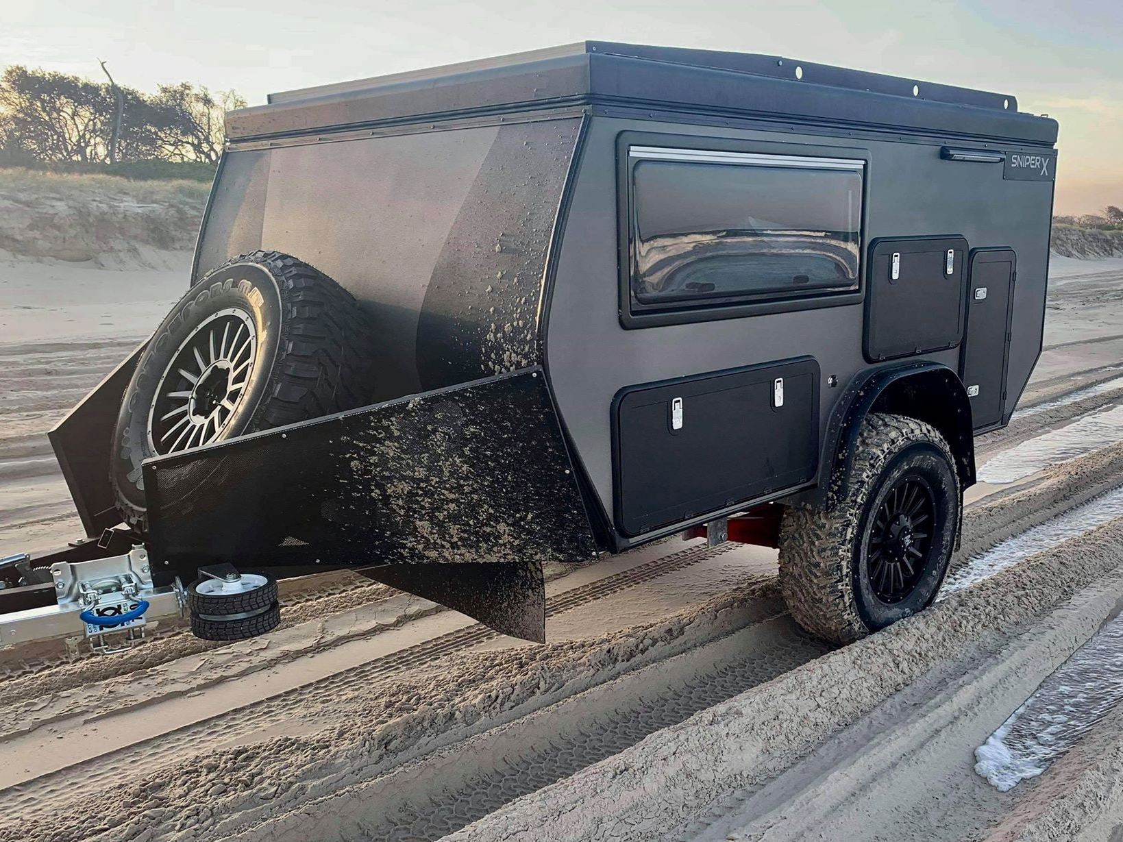 The coil-sprung suspension delivers good terrain clearance although it does have a beam-style axel. Thanks to its pop-top, there is standing room inside the trailer which provides an elevated level of comfort if you need to escape foul weather. Watch the full video below for all the details.