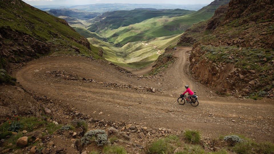 Day one was not only an indulgence of breathtaking scenery and a window into a vastly different culture; it also proved to be a test of our endurance and emotions as we rode some fantastically challenging dirt tracks and were temporary held hostage by two wonderful, remote Basotho villages. After stopping to filter water at the bottom of what looked like yet another several-hundred-meter climb, a distinguished-looking gentleman approached us on horseback. As it turns out, we had made the acquaintance of near royalty. The chief of the area villages, a very nice man, offered me a ride on his horse and laughed somewhat maniacally when I said I’d prefer to stay on my bike. After a few minutes of broken conversation (in and out of English and Sesotho, with a healthy dose of sign language added in), he introduced us to two other gentlemen who seemed to have been summoned from doorways in the giant green hills that surrounded us. We weren’t exactly sure what was going on, but were rolling with it as best we could. As it turned out, he assigned one man to escort my wife Virginia up the massive hill on his horse. He assigned the other to push her bike. I was left to pedal the nearly impossible, winding, rocky route, but the sheer and beautiful strangeness of the situation made it an enjoyable and humorous ride.