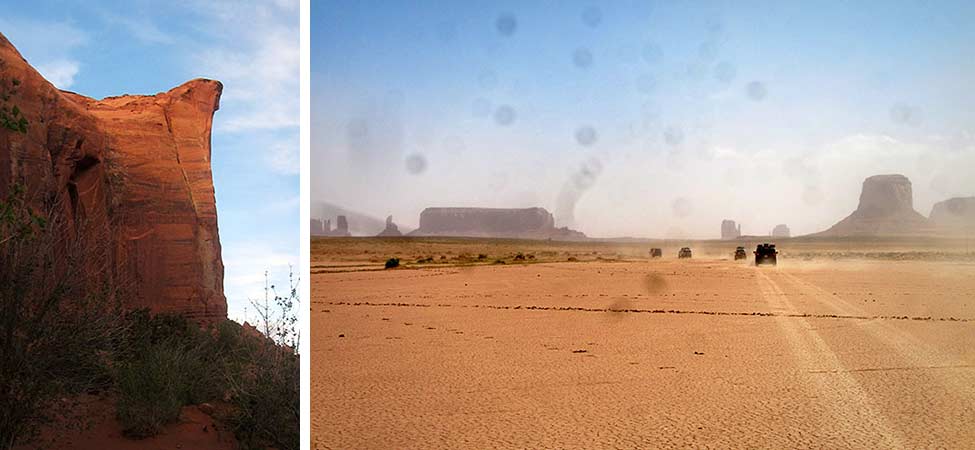 From Poncho House we tracked west under darkening skies, again drifting through the sand in search of the back road into Monument Valley and our camp for the night. When the towering spires of the valley did finally come into view it was like rolling down onto the set of a John Wayne movie. Our large overland vehicles appeared as mere insects next to the massive rock formations of the valley.