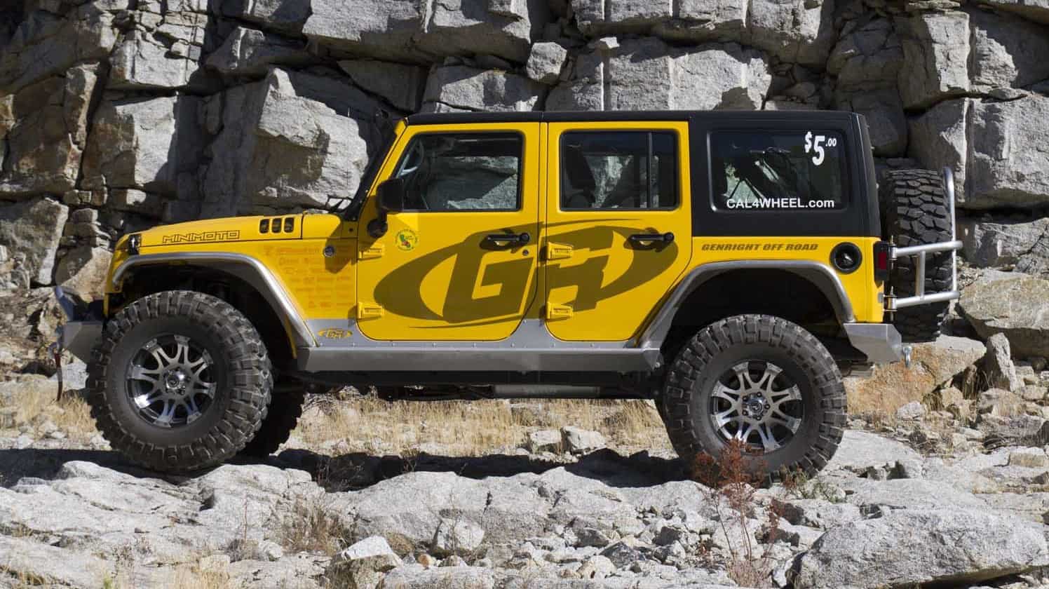 This year’s JK has been prepared by GenRight and features their Signature Series aluminum fenders, rear bumpers, and steel rock rails. Moving underneath you will find a Currie Rock Jock 44 front axle housing and OEM rear housing. Both are equipped with Yukon Zip pneumatic lockers, 4340 axles, and TBM brakes, and front sports knuckles from Reid Racing. Articulation and damping is managed by a BDS suspension and Fox shocks, while 37-inch BFG Krawlers and Raceline 982 Raptor wheels provide traction when it is needed. Under the hood, a 3.6-liter Pentastar V6, fitted a K&N cold air intake and Odyssey battery, transmits power to a 6-speed manual gearbox backed by an Atlas II 4.3:1 transfercase and JE Reel driveshafts.
