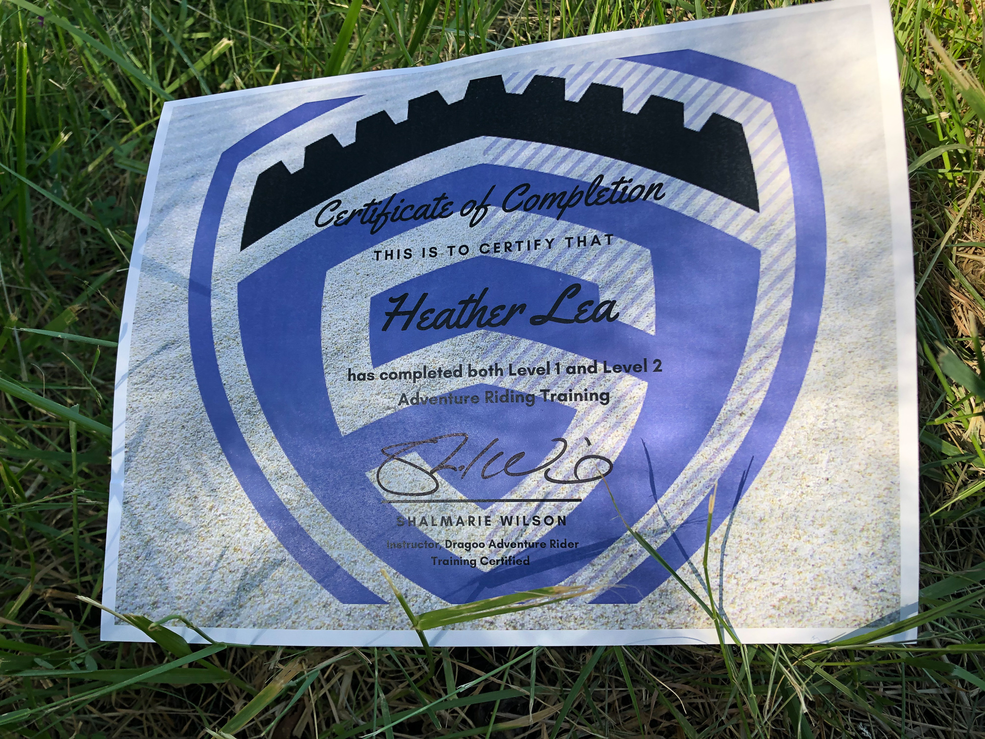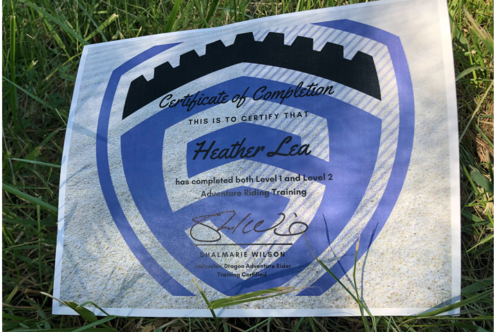 While traveling, I’d honed my riding skills daily, but after returning home, I was only going out a few times a year to ride BDRs or gallivant around town on pavement doing errands. My dirt skills would not improve this way, so in May—three and a half years after I got back from traveling—I signed up for SheADV’s Level 1/2 off-road course, endorsed by Dragoo Adventure Rider Training.
