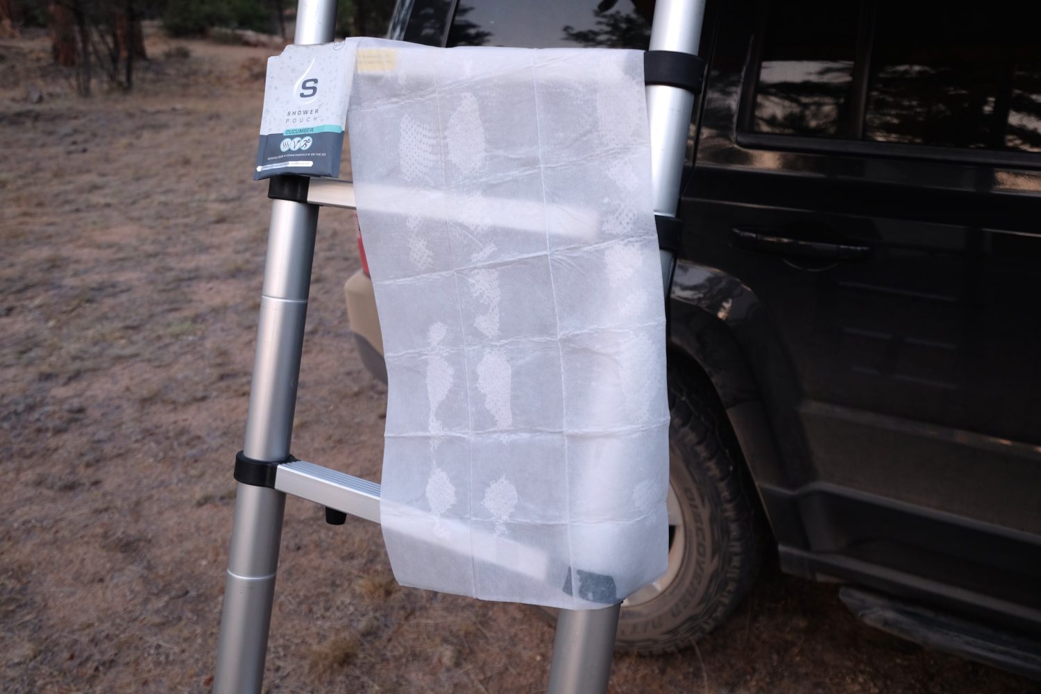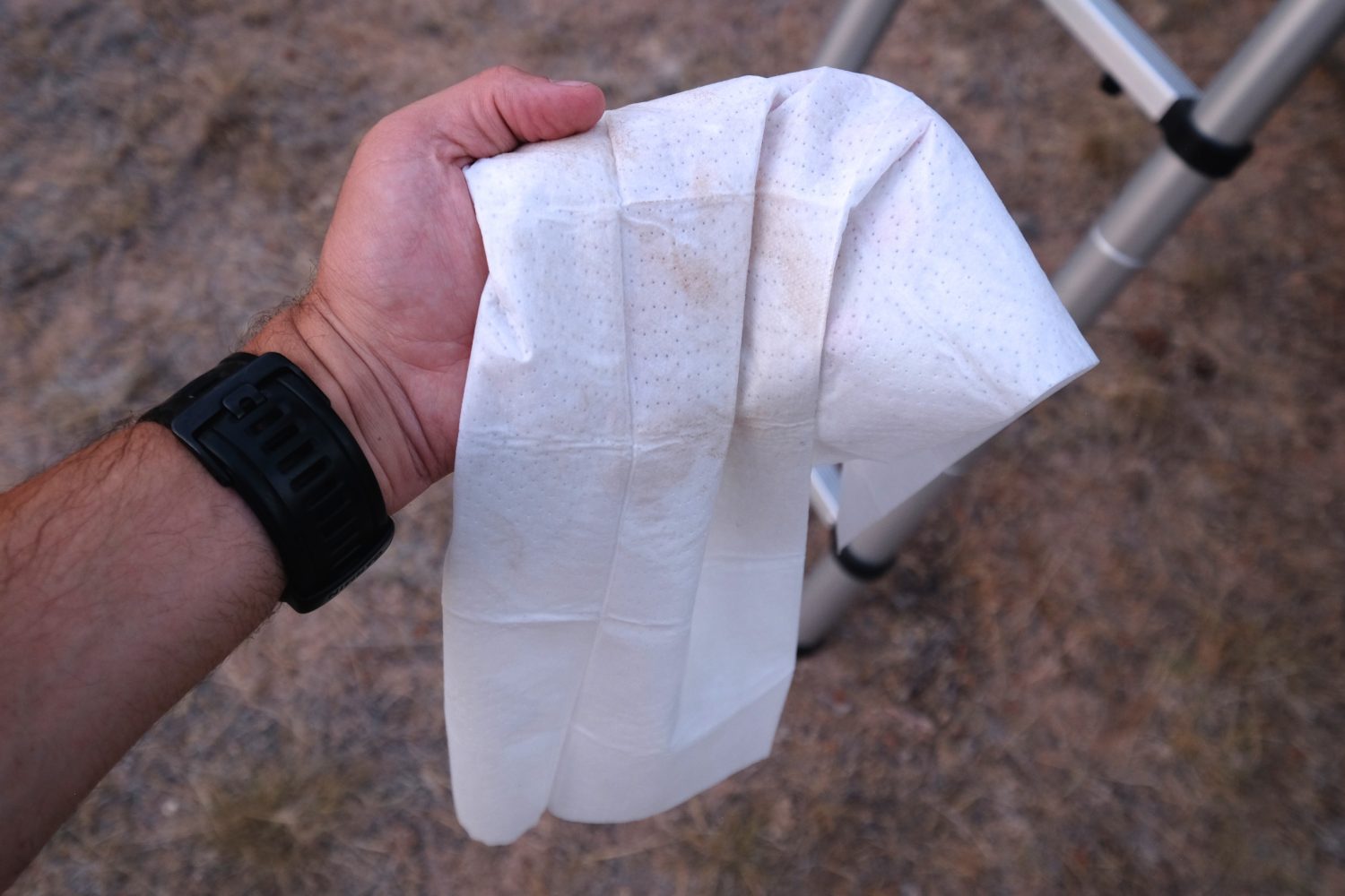 The stalwart of the modern camp bath has been the wet-wipe sold under various brand names, most of them designed to clean your hands—or a baby’s tiny bum. I’ve used them for years with moderate success. In most cases I burn through half a dozen wee towelettes ending the session not truly clean and smelling like a cumquat dipped in rubbing alcohol.